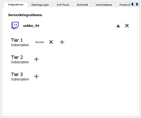 Dieser unterstützt eine twitch Integration, um automatisiert Servergruppen vergeben und auch entsprechend wieder nehmen zu können (Virtuellen Server bearbeiten Menü):